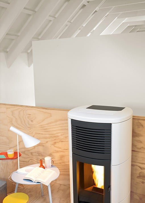 - Pelletkachels die warme lucht en warm water produceren om aan te sluiten op de centrale verwarming.